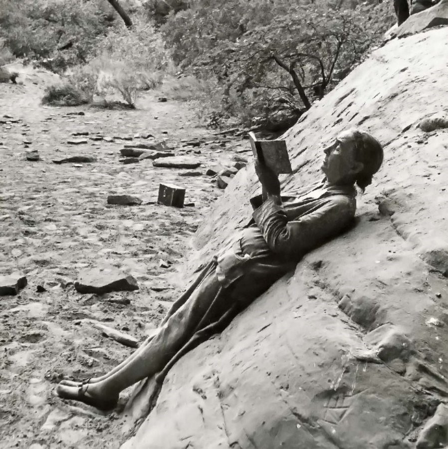 Georgia O’Keeffe reading in Glen Canyon, 1961 (photo by T. Webb)