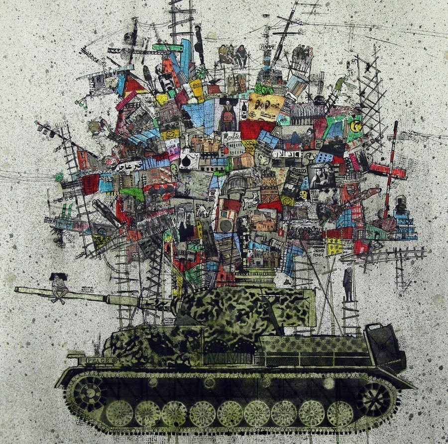 My city on a tank, 2015 by Lebanese artist Zena Assi